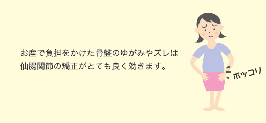 妊娠やお産で負担のかけた背骨や骨盤の歪みは、